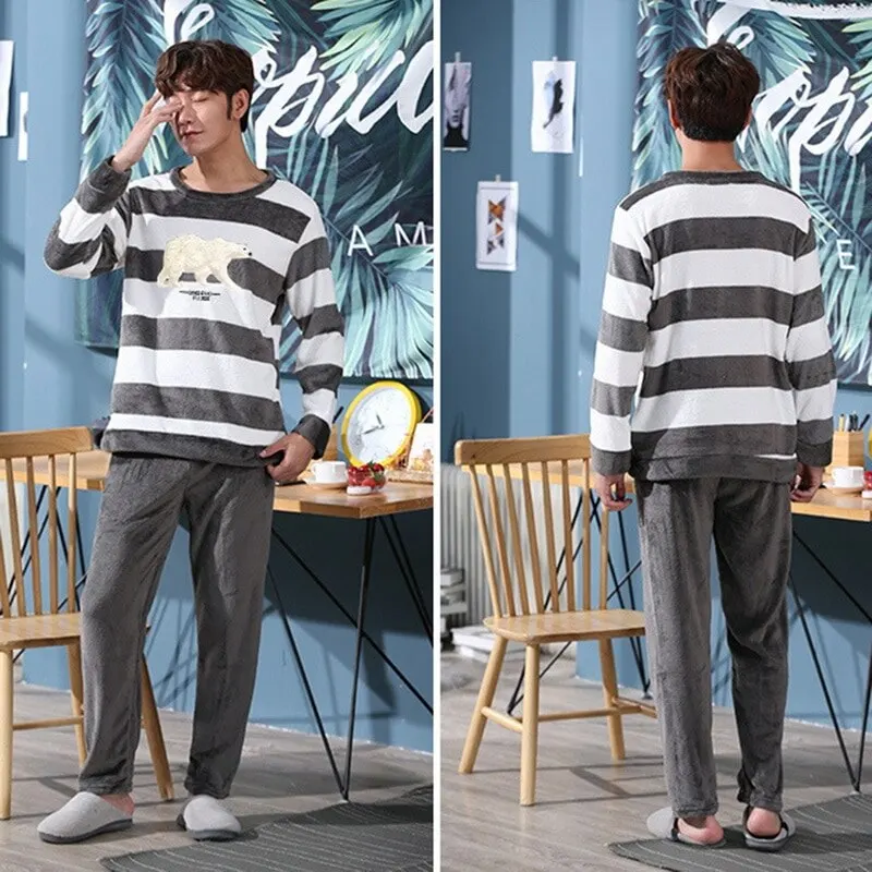 Пижамный комплект мужской, теплый фланелевый утепленный пижамный ко...