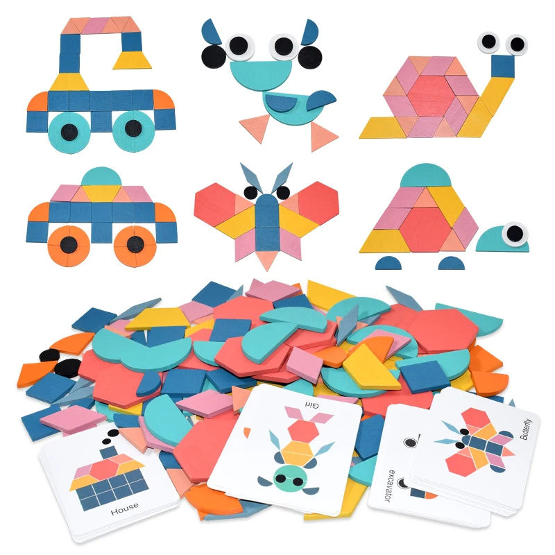 180 шт. Деревянные 3D головоломки Tangram Монтессори Обучающие игру...