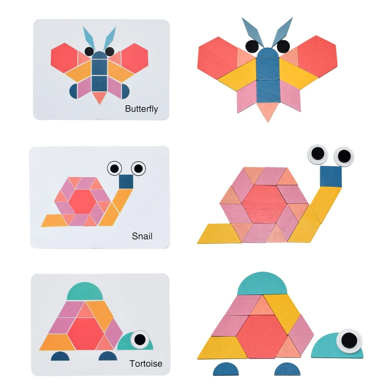 Детские игрушки Деревянный 3d пазл Танграм формы обучения мультфиль...