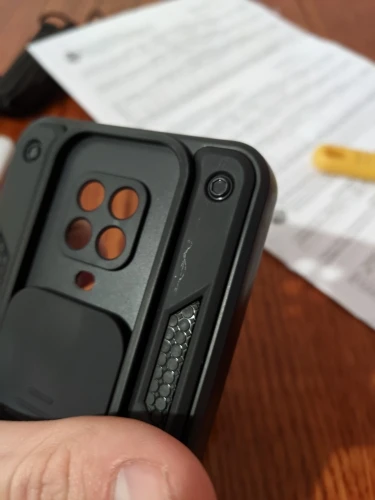 хороший плотный чехол, камеру закрывает заглушка, но вспышка остаётся открытой (можно пользоваться фонариком). борта высоковаты, при смахиваниях палец тормозит о бортики. на кнопку блокировки неудобно нажимать, так как она не закрыта (отпечаток через неё задействован)
