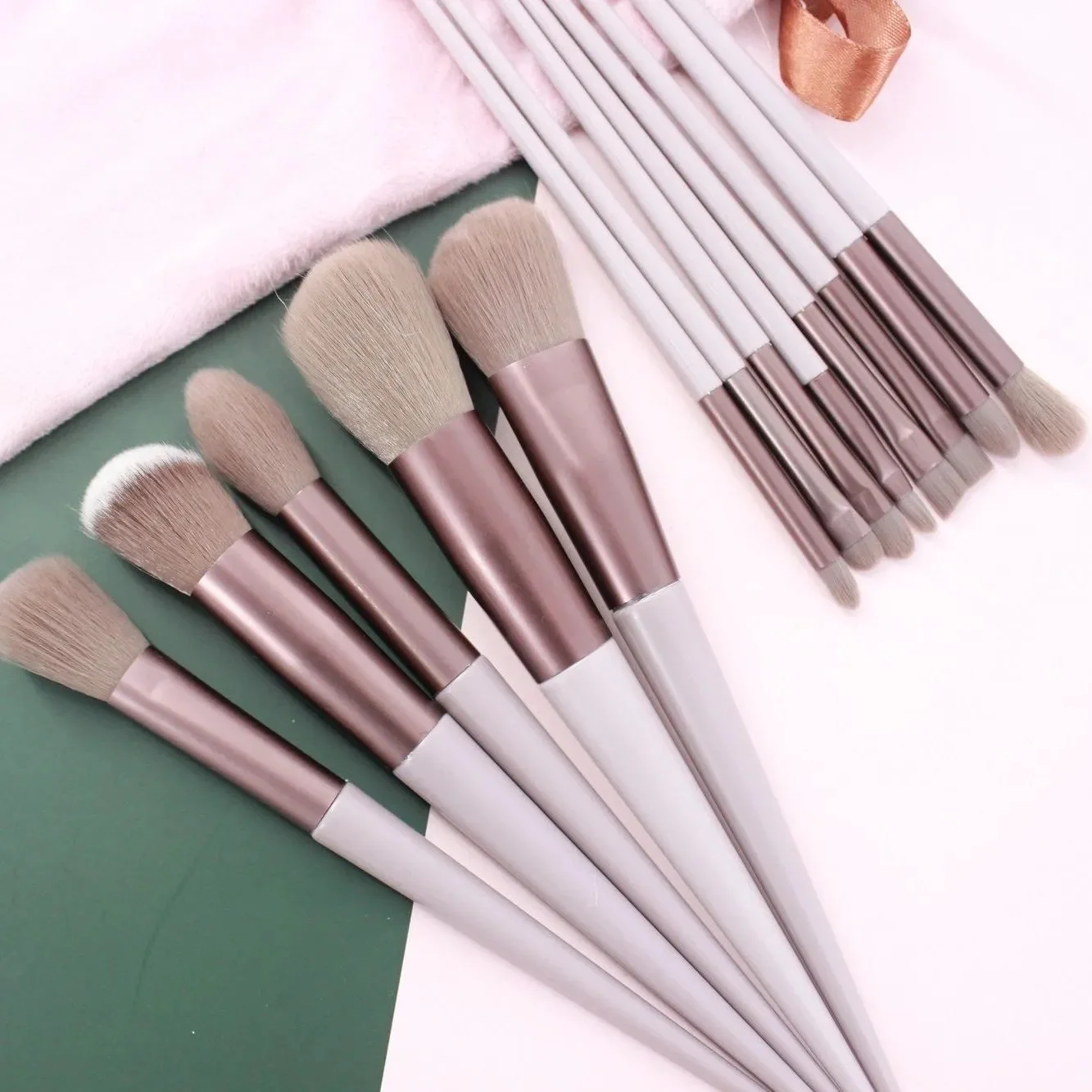 Описание:Набор из 13 кистей, включая кисть для основы, Кисть для макияжа, кисть для теней, кисть для румян, кисть для теней, кисть для губ и т. д.Мягкие и тонкие искусственные волокна уменьшают повреждение кожи.Деревянная ручка и алюминиевая трубка, прочная Косметическая щетка.Легко чистить, не легко линять волосы.Характеристики: