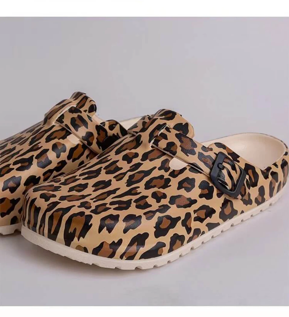 Тапочки EOFK женские леопардовые, летние Нескользящие сабо из ЭВА, мягкая обувь для спа-салона, салона красоты, медицинская лабораторная комнатная обувь