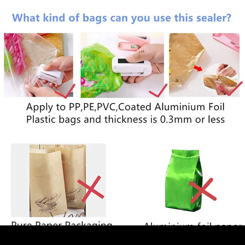 Мини-упаковщик для пакетов, портативная машина для теплоизоляции, зажим для пищевых продуктов, упаковка для закусок, конфет, теплоизолятор, ручной упаковщик для пакетов