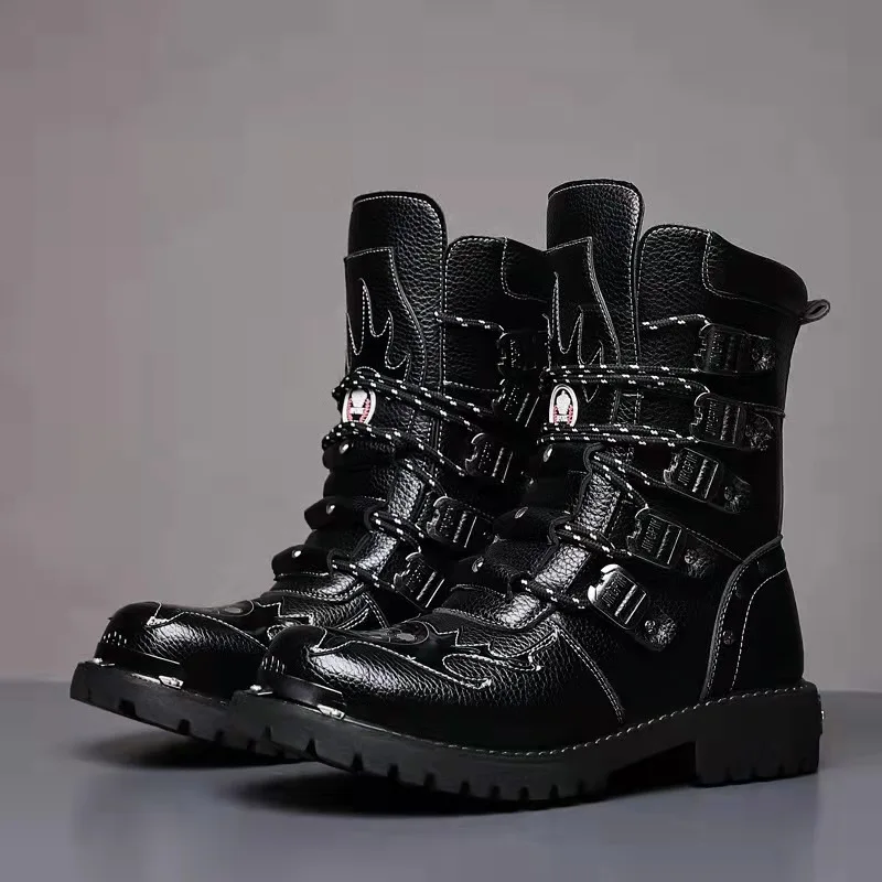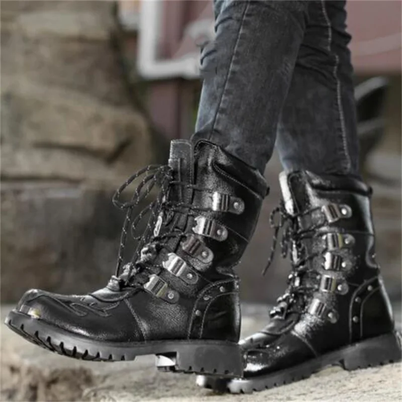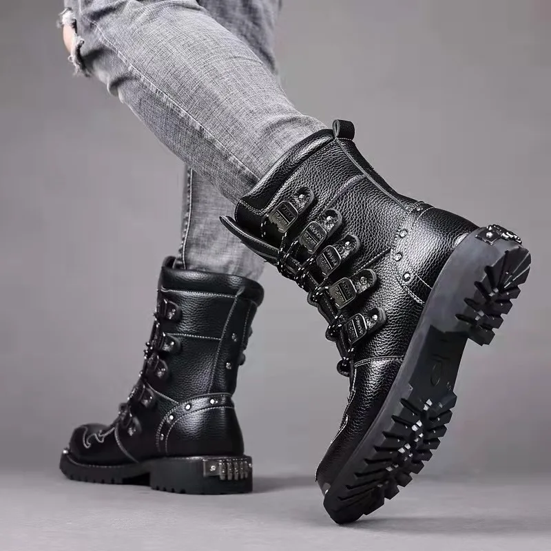 Мужские ботинки с заклепками, черные ботинки с кружевом спереди, в стиле панк, локомотивная обувь для осени и зимы, 2019
