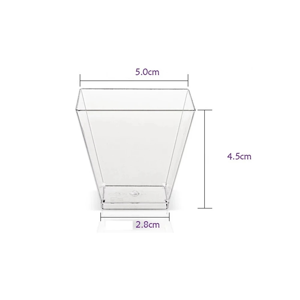 10/20 шт десертные чашки 60 мл ПрозрачныйИспользуется в качестве десертного контейнера для мусса, желе, пудинга, Тирамису и т. д.Вечерние украшения для бара.Емкость: трапеция: 60 млМатериал: пластикЦвет: прозрачныйРазмеры: приблизительно Лестница: 5 см х 4,5 см х 2,8 см