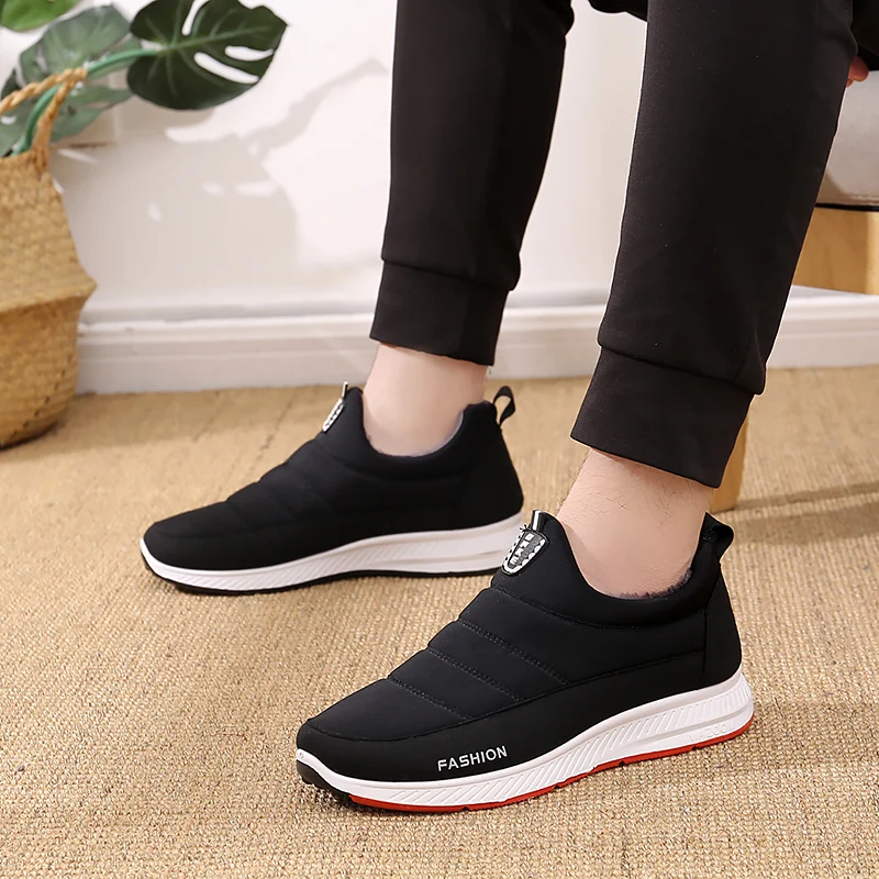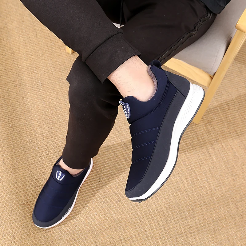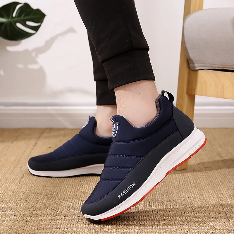 Кроссовки мужские на плоской подошве, без шнуровки, с мехом