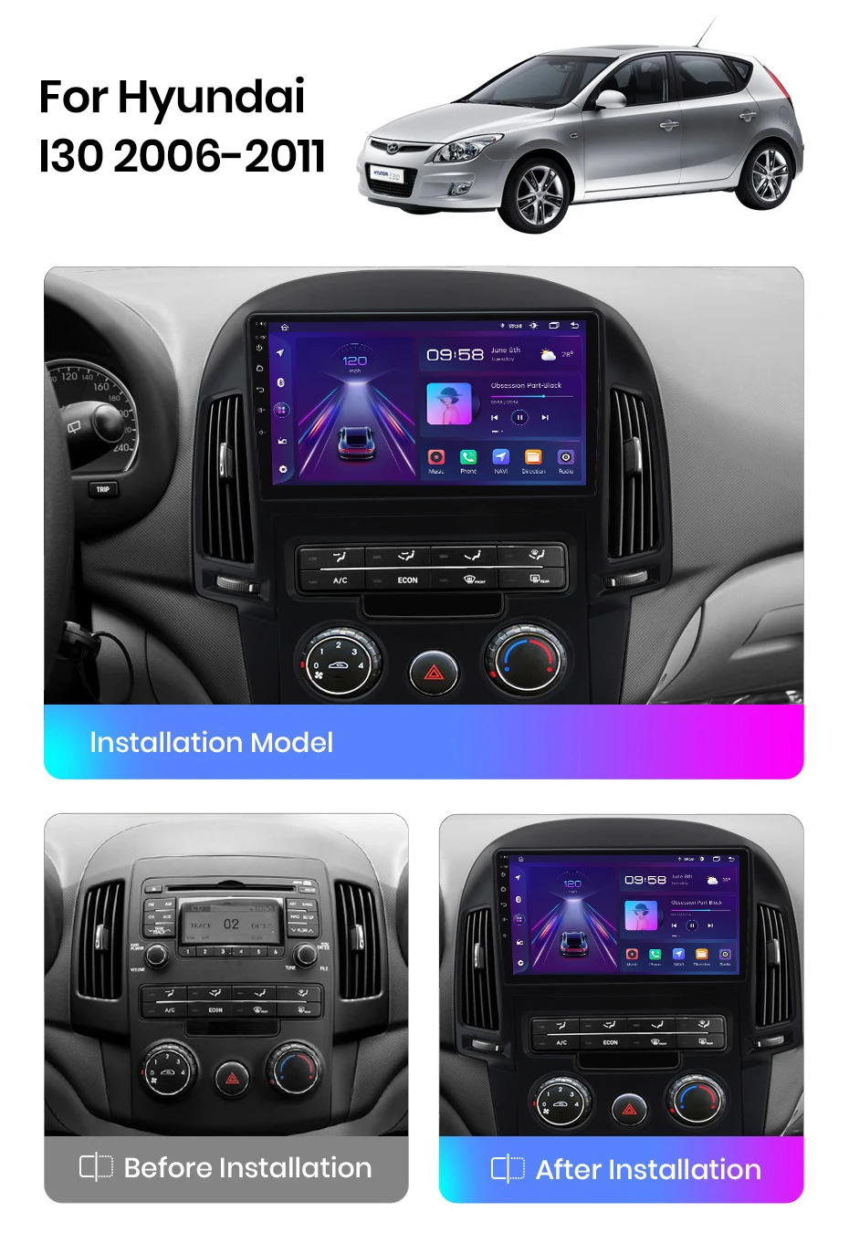 AWESAFE Android автомобильный радиоприемник, мультимедийный плеер для Hyundai I30 2006-2011, Авторадио с сенсорным экраном, 4G Carplay, 2din GPS
