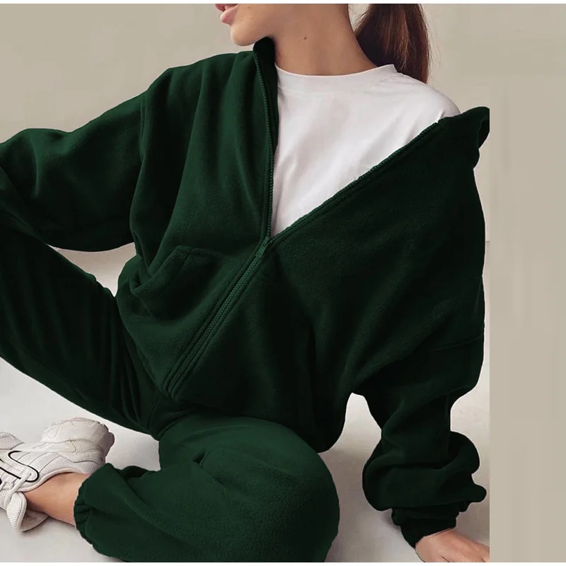 Повседневный Женский комплект из двух предметов с флисовой толстовк...