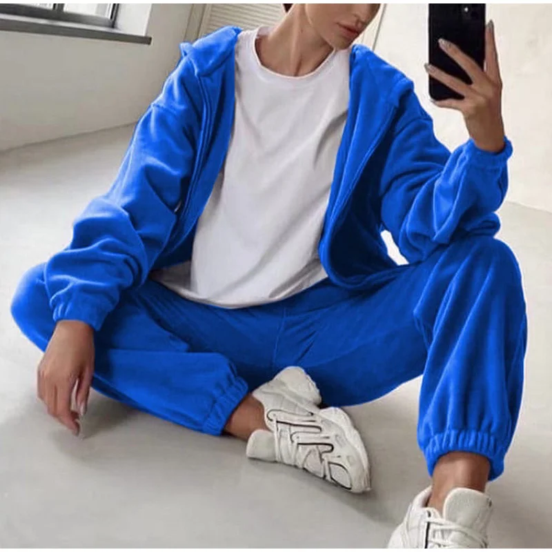 Повседневный Женский флисовый комплект с худи, верхняя одежда на молнии с капюшоном и брюки-шаровары, костюм на осень и зиму, модная уличная одежда, женский спортивный костюм