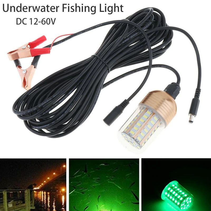 Суперъяркая рыболовная лампа, 60 светодиосветодиодный, Подводная Водонепроницаемая IP68 приманка, лампа для поиска, привлекает креветки, кальмар, крилл, Зеленый Белый, 30 Вт, 12 В