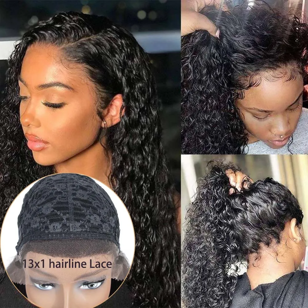Кудрявые 13X 1 парики из человеческих волос на сетке спереди для же...