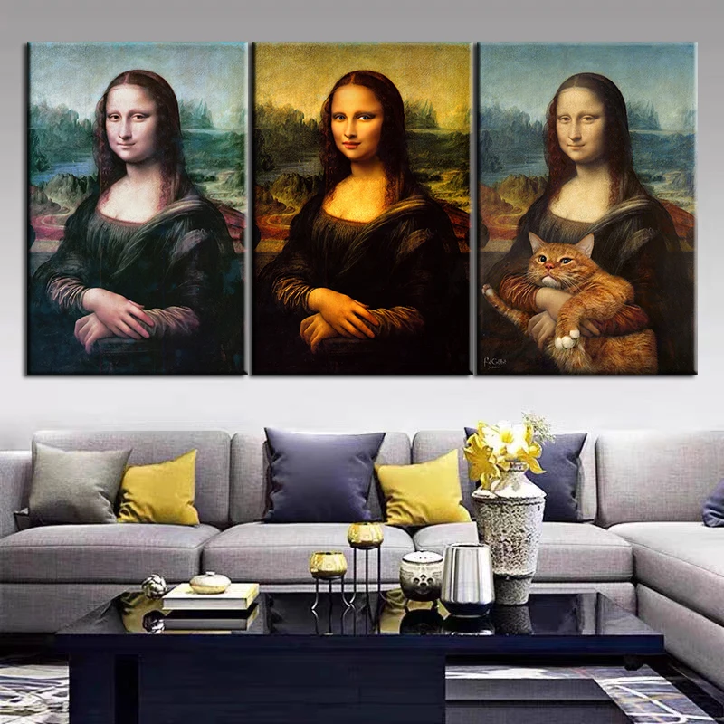 Известный художник Леонардо да Винчи моралиса обнимательный Кот абстрактное масло на холсте настенные картины постеры для гостиной домашний декор