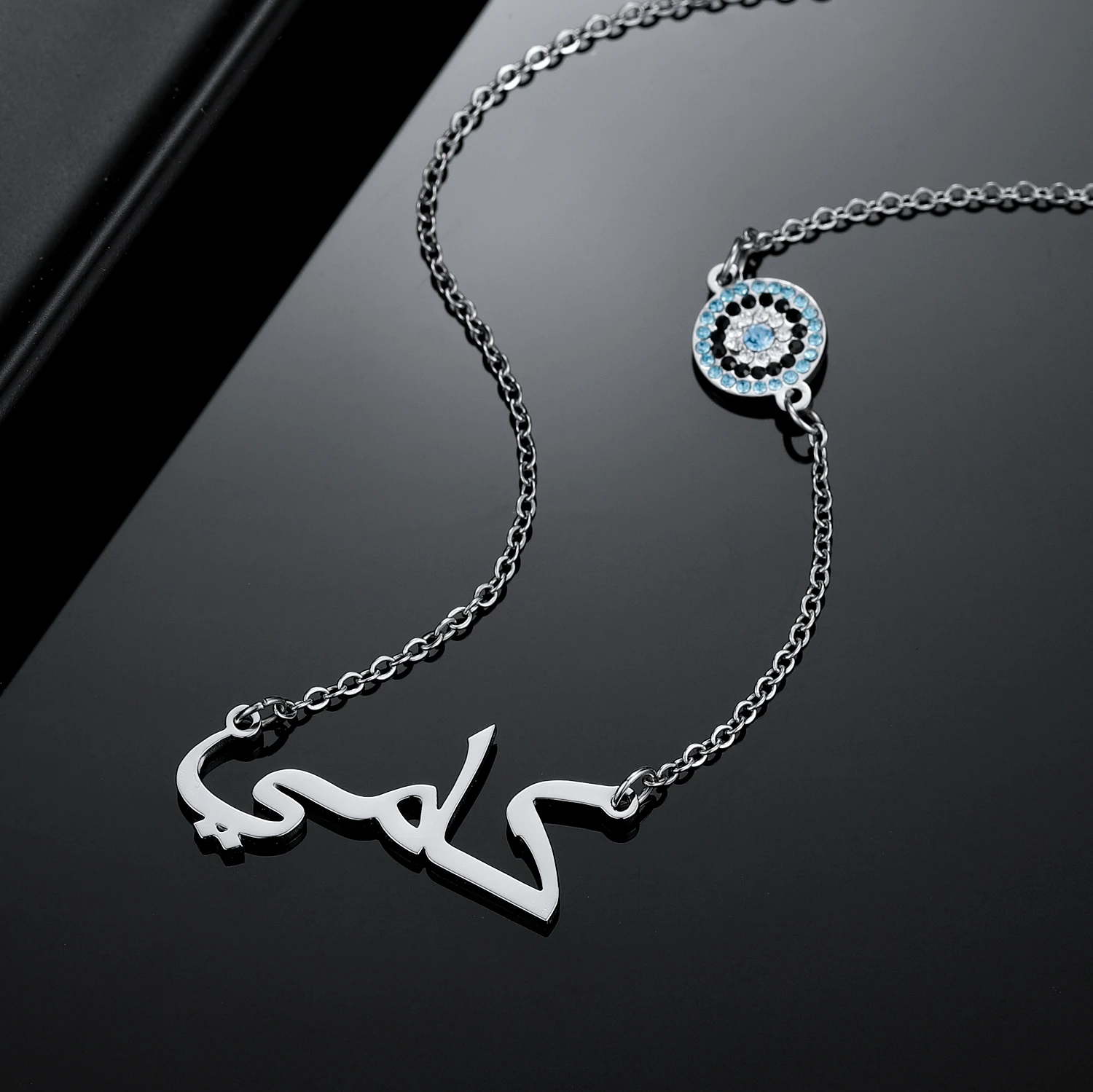 Ожерелье с арабским именем на заказ, ожерелье с демоническим глазом, персонализированные ювелирные изделия, ожерелье из 18-каратного золота, Золотая цепочка, кулон из нержавеющей стали для женщин