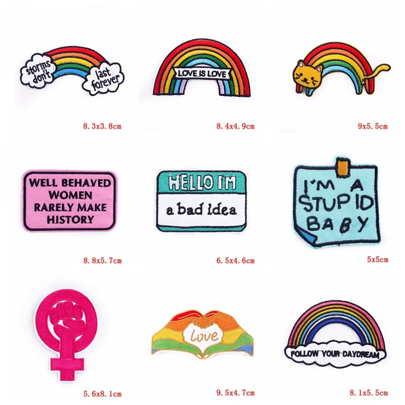 10 шт.лот вышитые радужные нашивки для одежды, термоклейкие нашивки...
