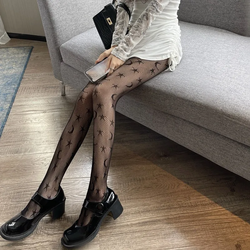 2022 новые модные сетчатые чулки с изображением Звезды Луны Jk милые сетчатые колготки для девочек женские черно-белые колготки из сетки