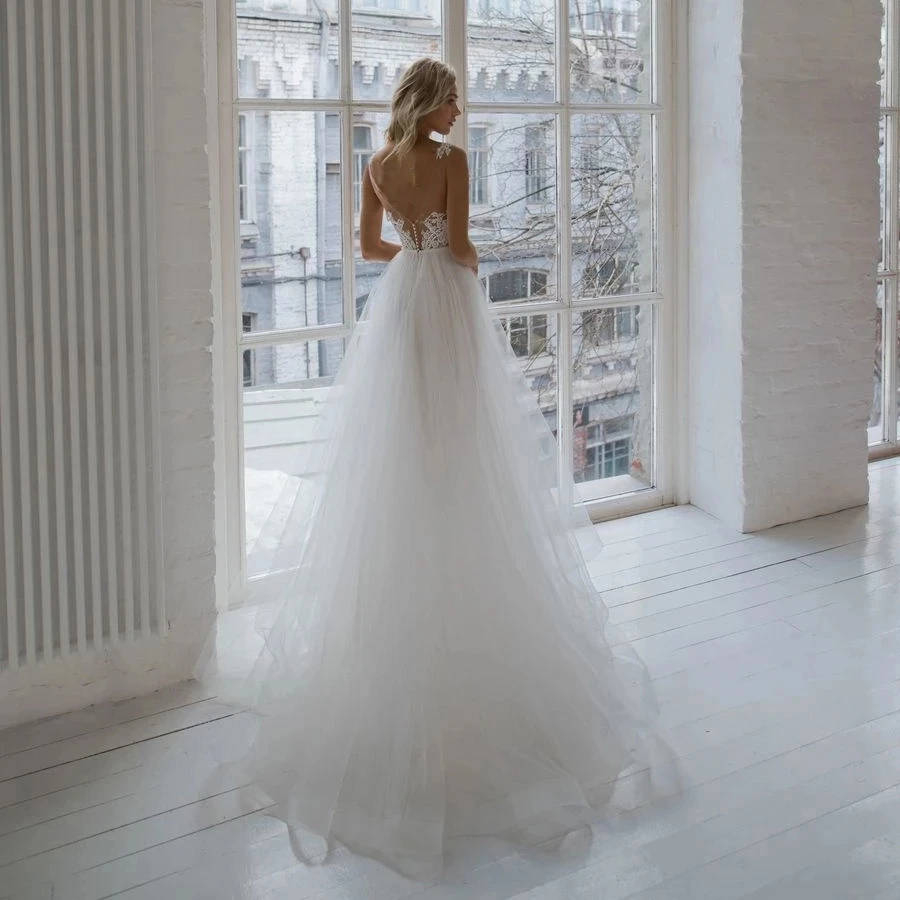 Сексуальное Тюлевое богемное свадебное платье А-силуэта, простые свадебные платья в стиле бохо, платье для невесты, элегантные женские платья