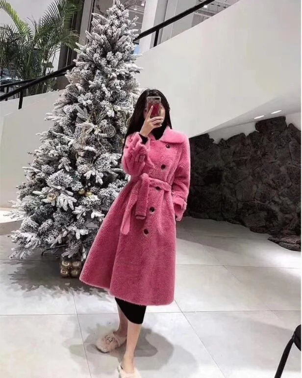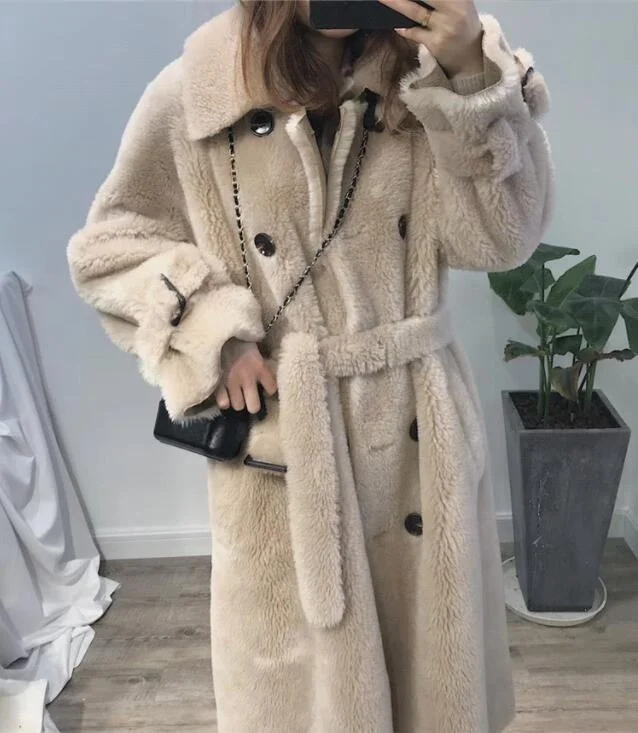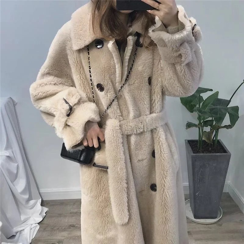 Женское длинное пальто из овечьей шерсти, длинное плюшевое пальто оверсайз из натуральной овечьей шерсти, зима 2021
