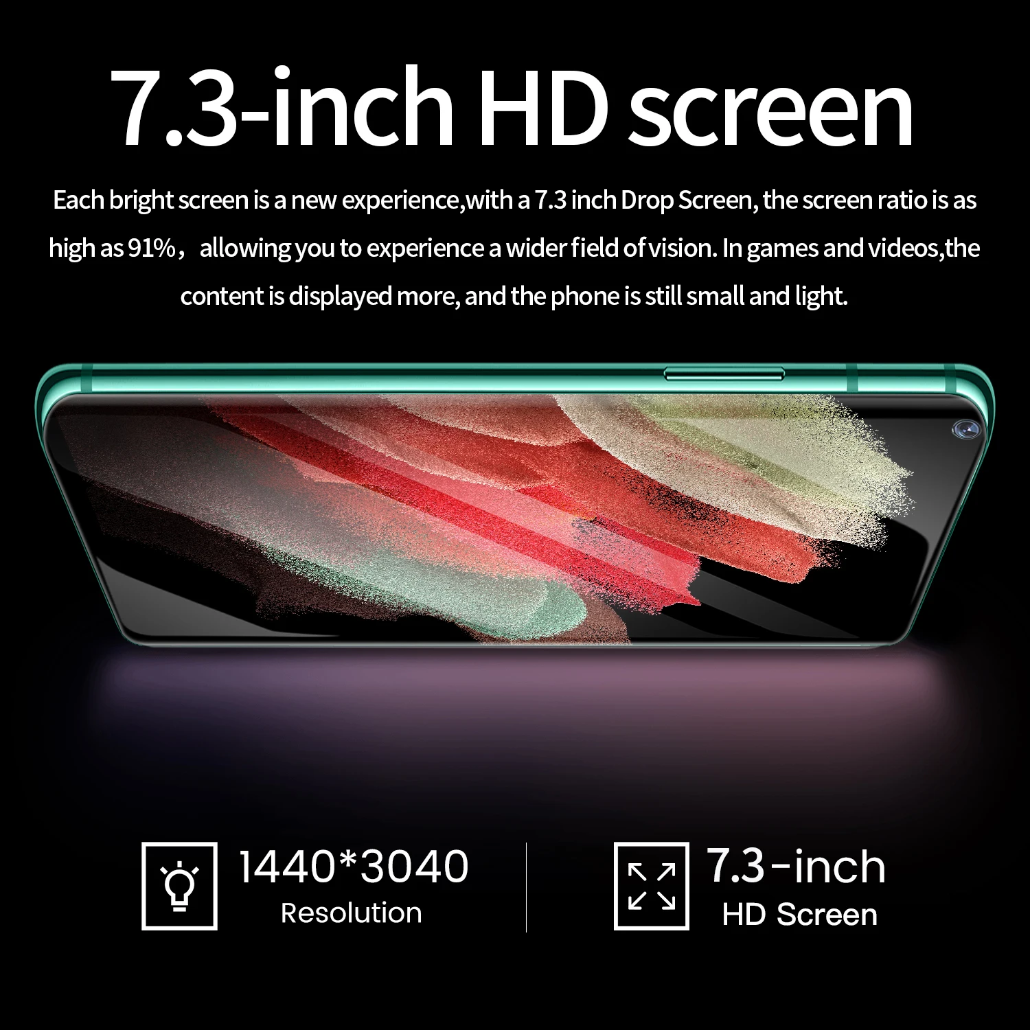 Новинка, смартфон глобальная версия S21, телефон с экраном 16 + 512 ГБ, мобильный телефон с 10-ядерным процессором, Android 10, 6800 мАч, игровой телефон с функцией распознавания лица