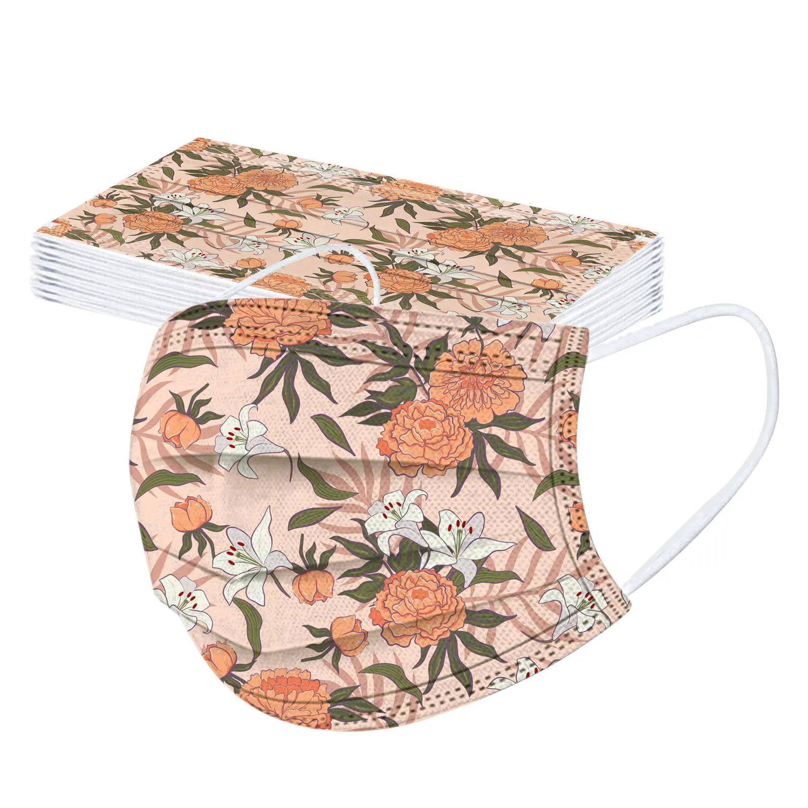 Маска одноразовая трехслойная из нетканого материала с фильтром и цветочным принтом, 50 шт.
