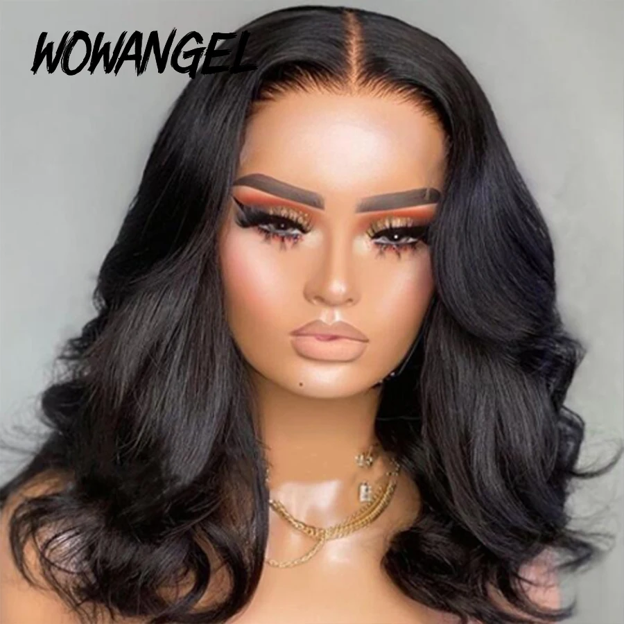 Предварительно вырезанные 13x4 Full HD Синтетические волосы на кружеве al парики короткие волнистые синтетические парики расплава шкуры HD прозрачный Синтетические волосы на кружеве парик Выбеленные узлы для женщины