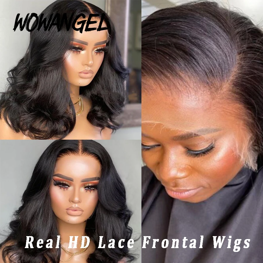 Предварительно выщипанные 13x4 HD полностью кружевные передние al парики короткие волнистые парики боб расплавленные шкуры HD прозрачный кружевной передний парик отбеленные узлы для женщин