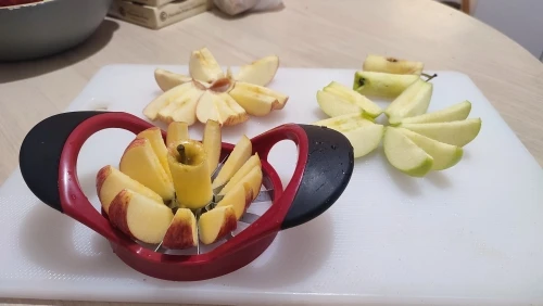 -Идеальная кухонная утварь: вы можете использовать эту овощерезку для приготовления здоровых яблочных закусок для детей в schoool или быстрозамороженных яблочных закусок для офиса и вечеринок. Полезный инструмент для подготовки яблок для ног или пружин.