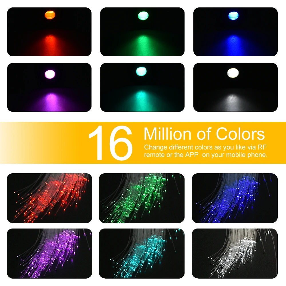 Волоконно-оптический светильник с дистанционным управлением, 6 Вт, RGBW, управление через приложение, светящийся кабель для автомобисветильник, освещение, звездное небо, украшение для комнаты, потолка