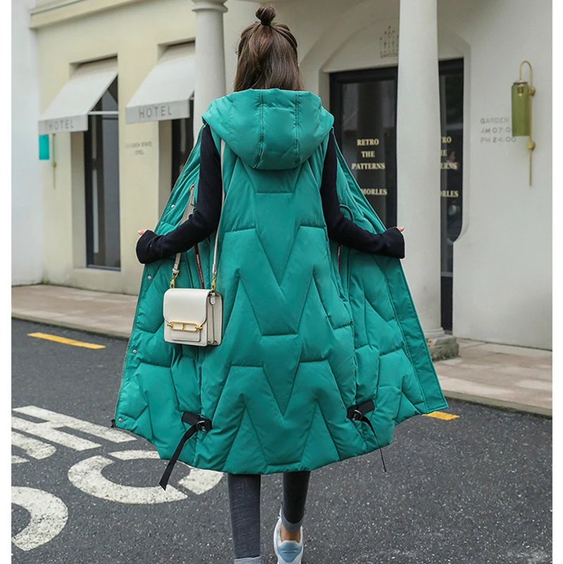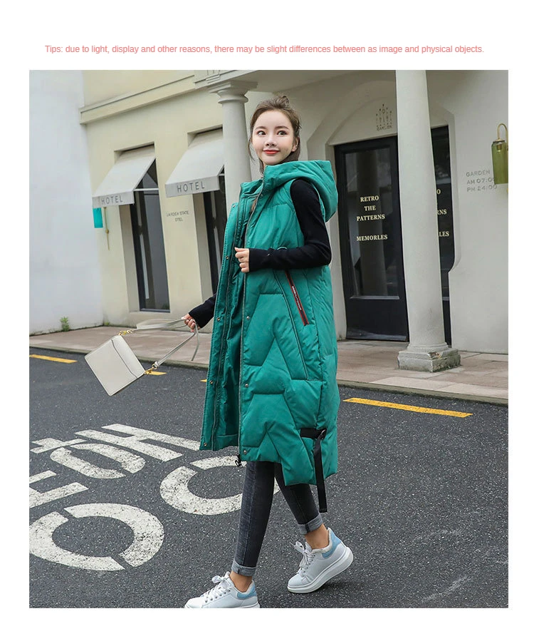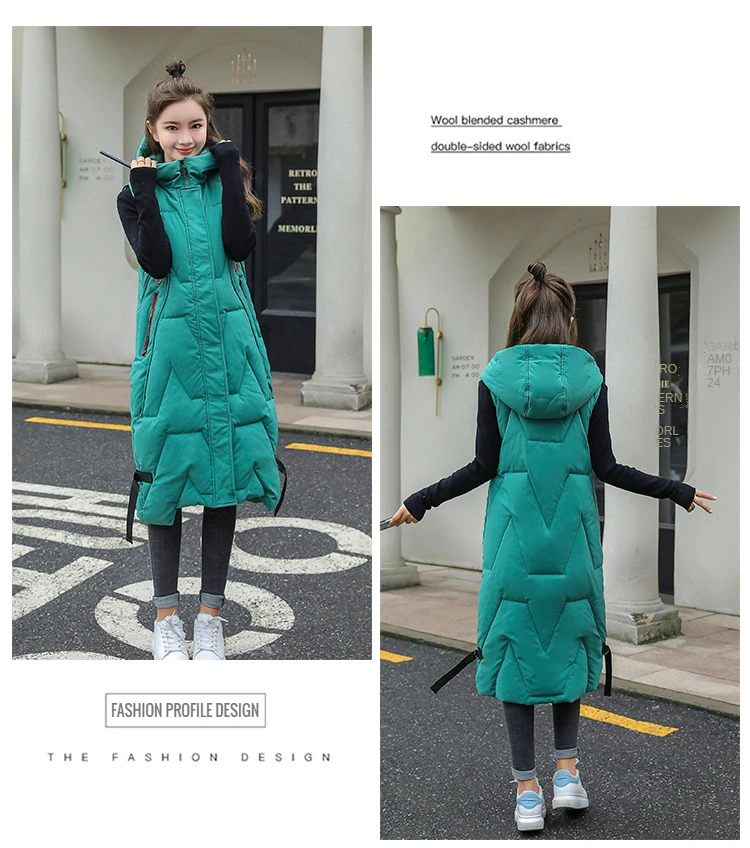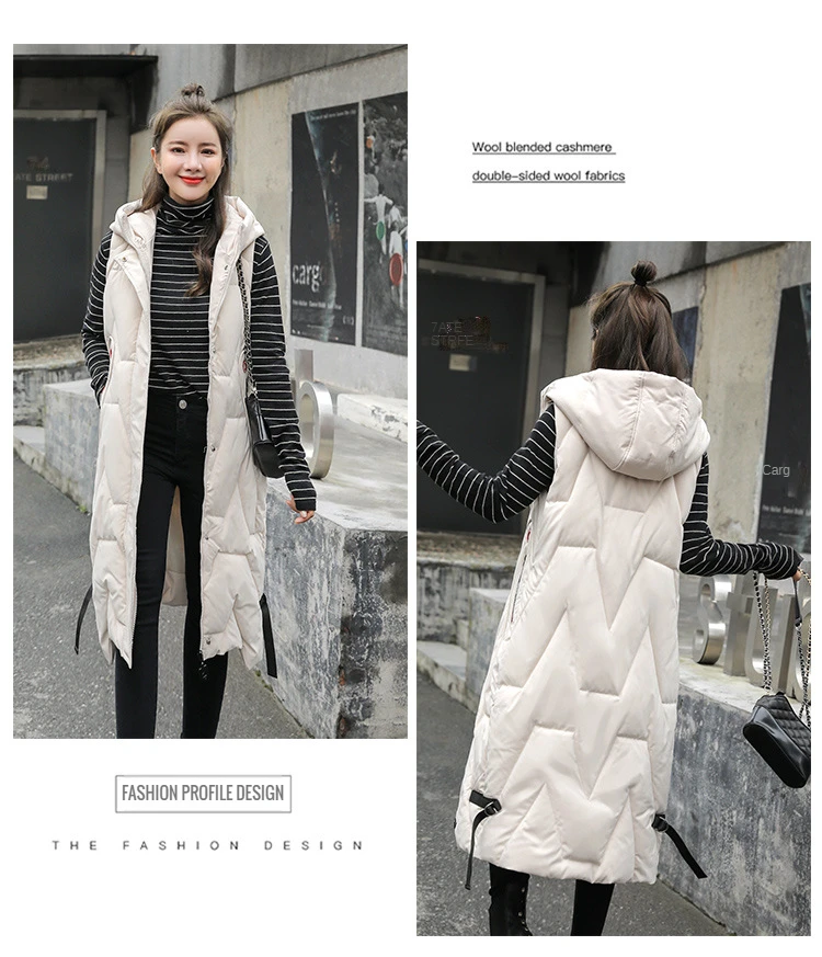 Женский Длинный жилет с подкладкой на пуху, осень и зима, новая модная повседневная куртка с капюшоном в Корейском стиле, женские парки, 2022