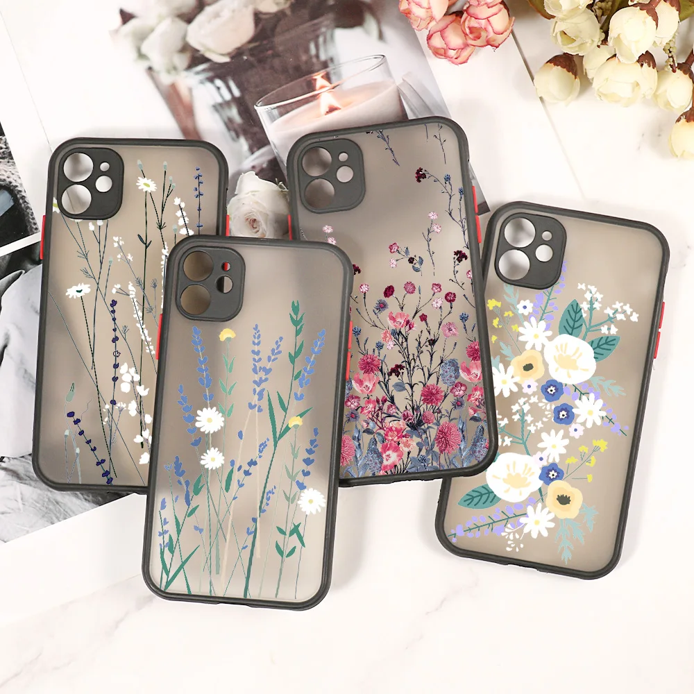 Цветочный матовый чехол для iPhone 13 Pro Max, защитный чехол для камеры Apple 11 12 Pro Max XR XS Max 7 8 6 6S Plus X 13 Mini Cover