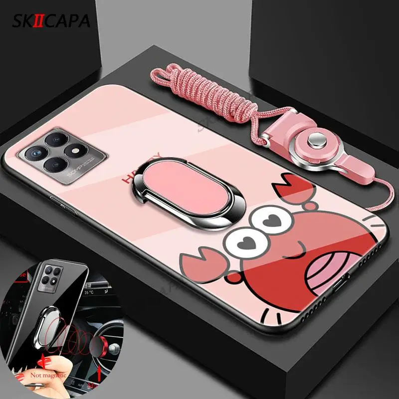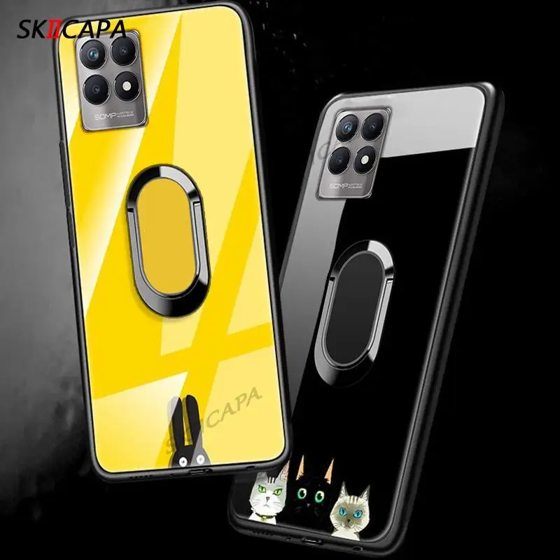 Окрашенный чехол из закаленного стекла для телефона для OPPO Realme 8i 7i Вращающийся палец кольцо подставка Магнитный чехол для Realme 8 5G 7 6 Q3 Q2 чехлы