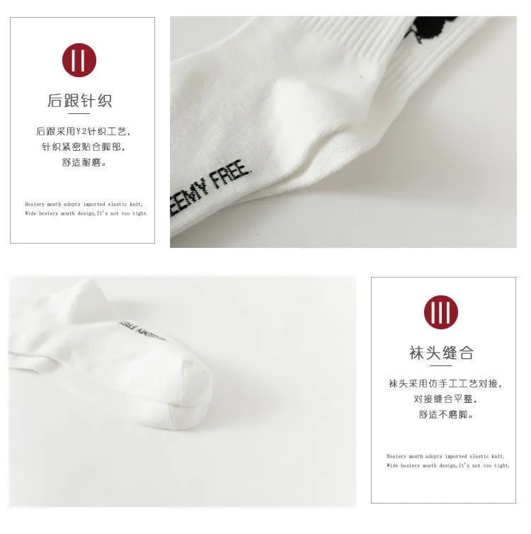 Черно-белые спортивные женские носки, 1 пара, японские хлопковые милые носки с мультяшным рисунком для скейтборда, мягкие длинные носки для женщин