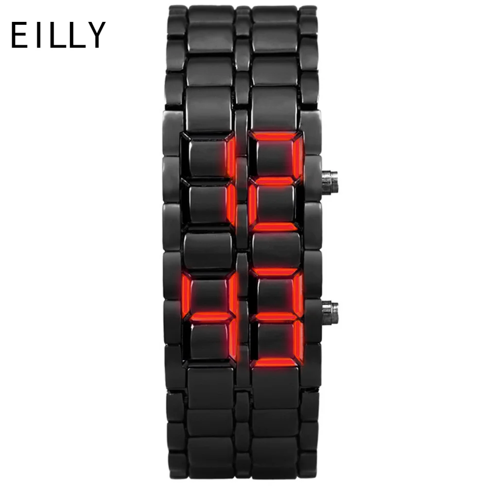 Новые железные Самурайские пластиковые браслеты, лавовые часы, светодиодные цифровые часы, часы для мужчин и женщин
