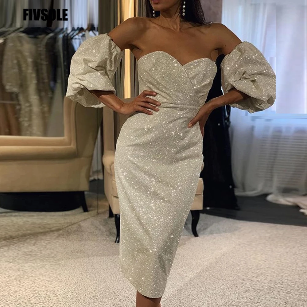 Блестящее свадебное платье Fivsole длиной ниже колена с короткими рукавами-фонариками, женское платье с юбкой-годе в романтическом стиле, 2021