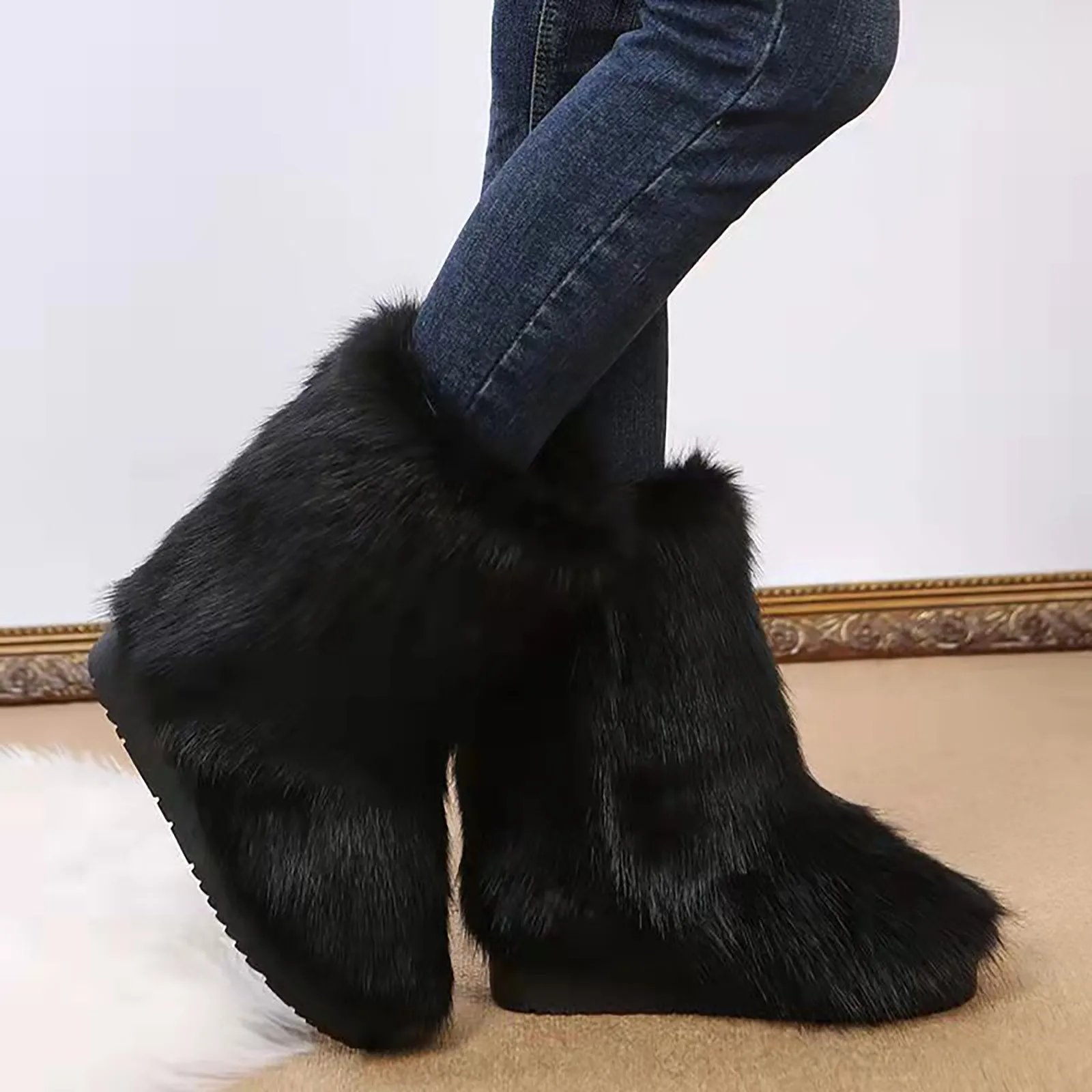Женские меховые зимние ботильоны до середины икры, модные теплые Нескользящие ботильоны на плоской подошве, Роскошные зимние толстые австралийские искусственные ботинки, новинка 2022