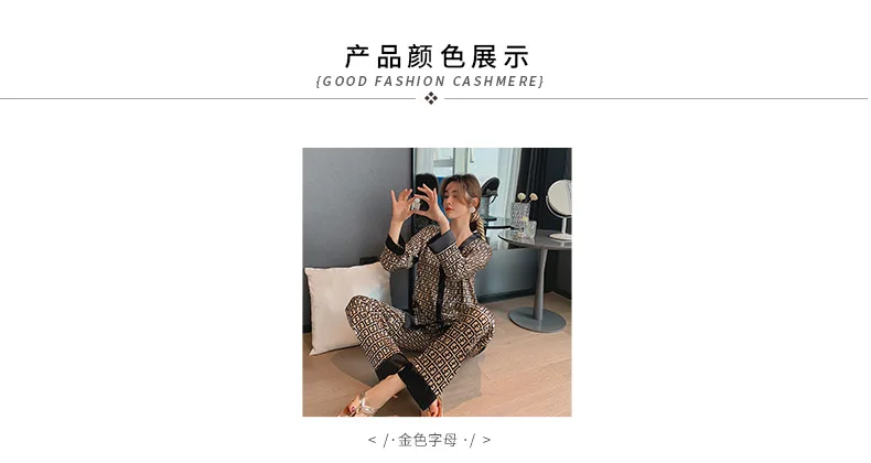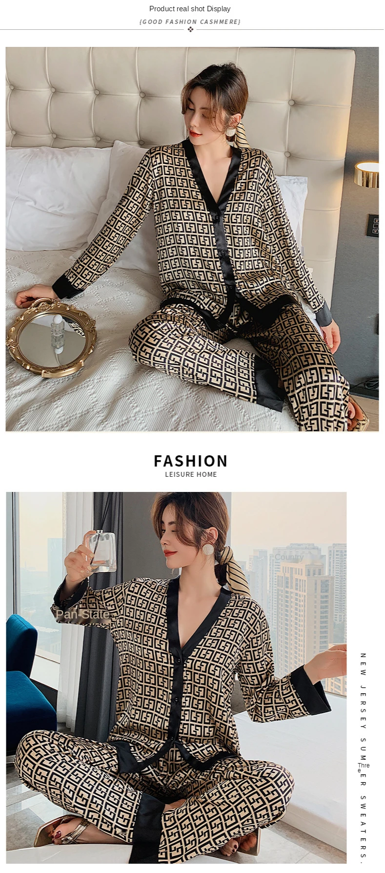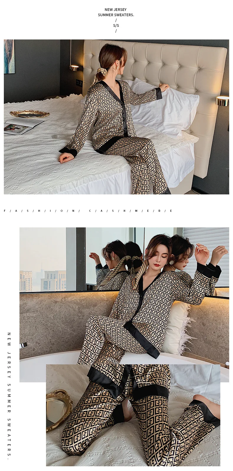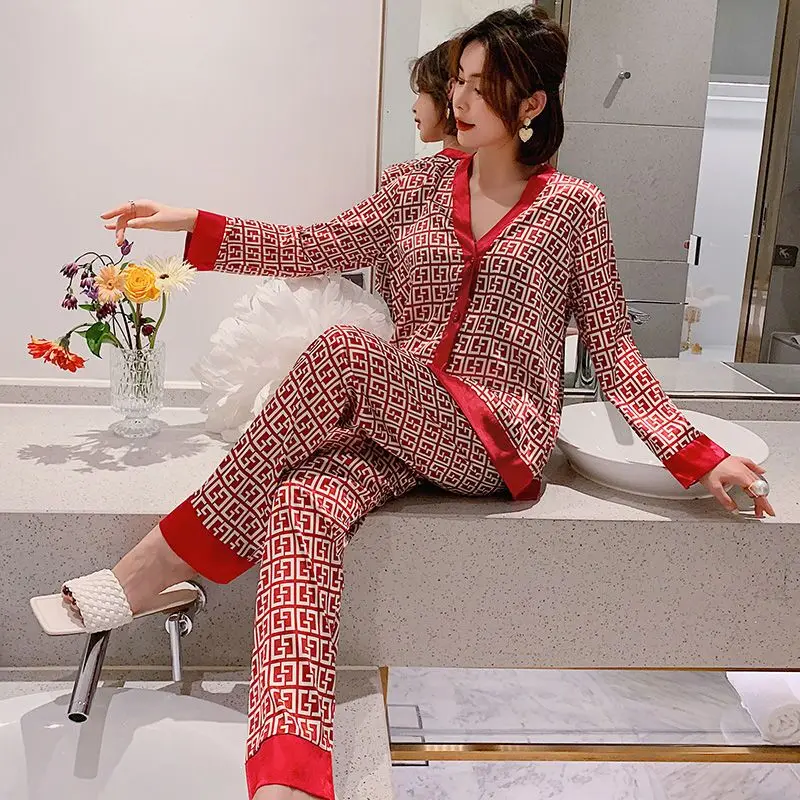 Пижамный комплект женский из двух предметов, атласные шелковые брюки с V-образным вырезом и длинными рукавами, Повседневная Домашняя одежда, весна-осень