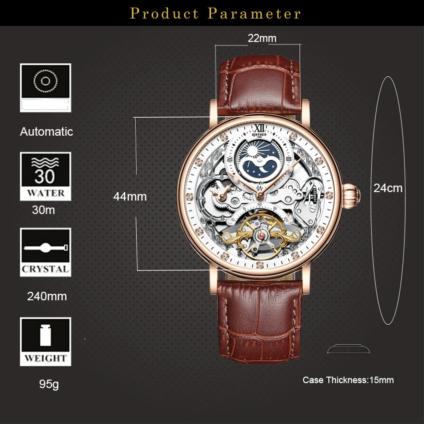 Часы-скелетоны KINYUED Мужские механические, автоматические наручны...