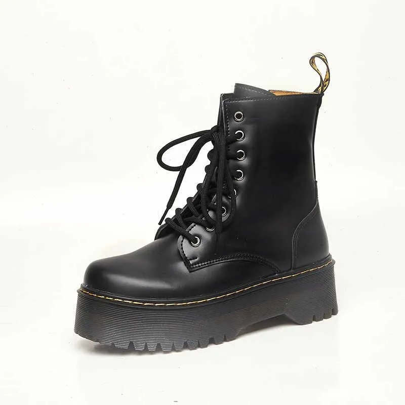 Женские ботинки на толстой подошве, Осень-зима 2022, модные боевые ботинки на платформе с круглым носком и шнуровкой, женская обувь