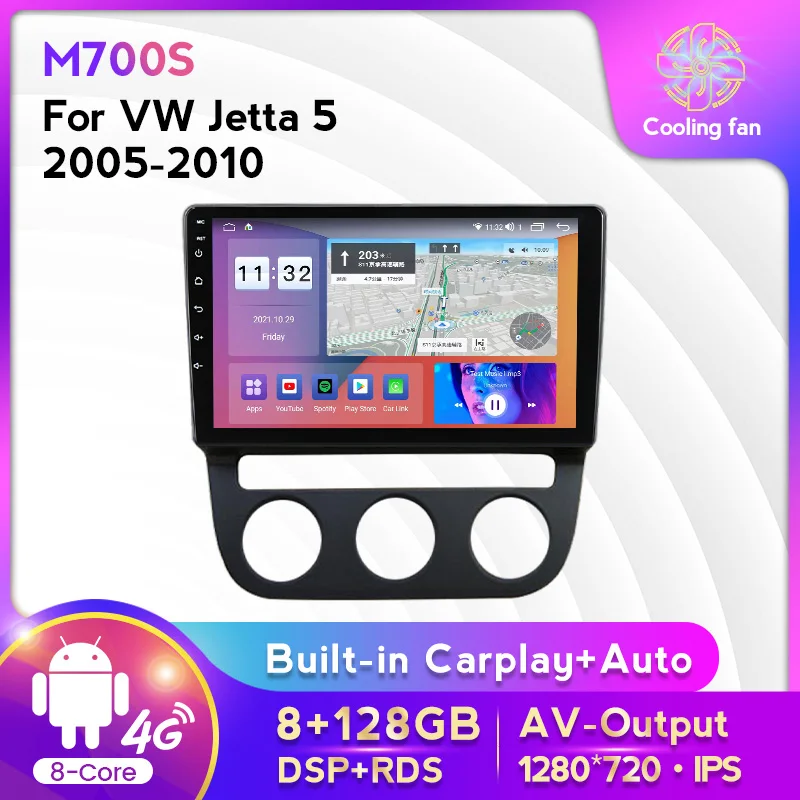 Автомобильный мультимедийный плеер с радио, Android 11, 8G + 128G для Volkswagen VW Jetta 5 2006-2010, GPS-навигация, поддержка SWC Carplay OBD DAB