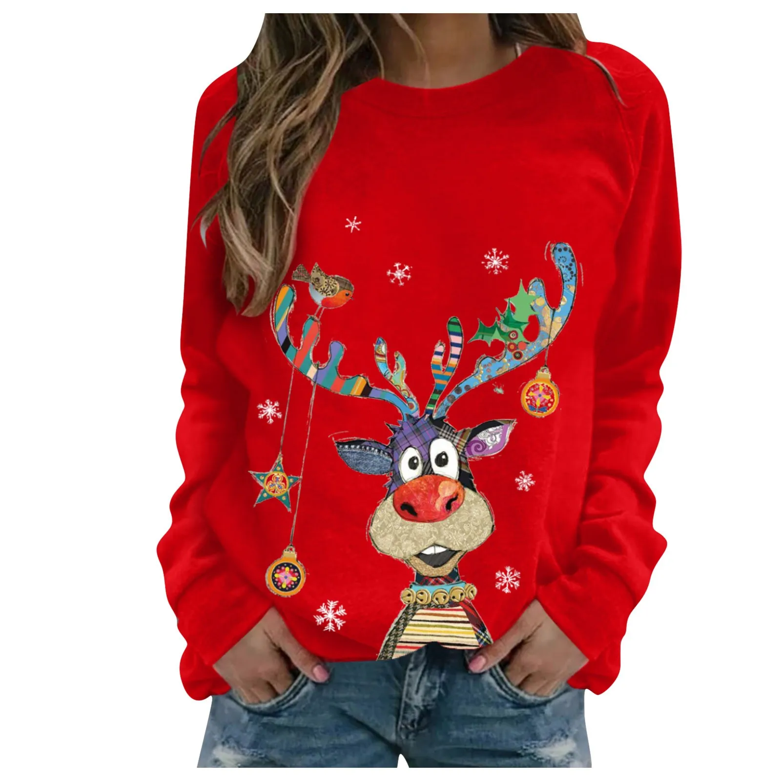 Зимний Рождественский женский свитер с принтом лося, свитер с длинным рукавом и круглым вырезом, кардиган, джемпер, топы, Рождественская одежда, свитер женский