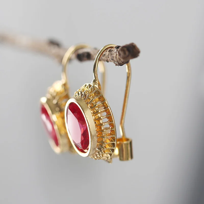 Женские серьги-гвоздики с натуральным красным Рубином
