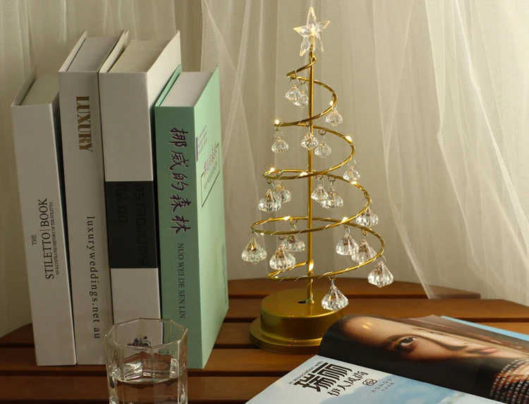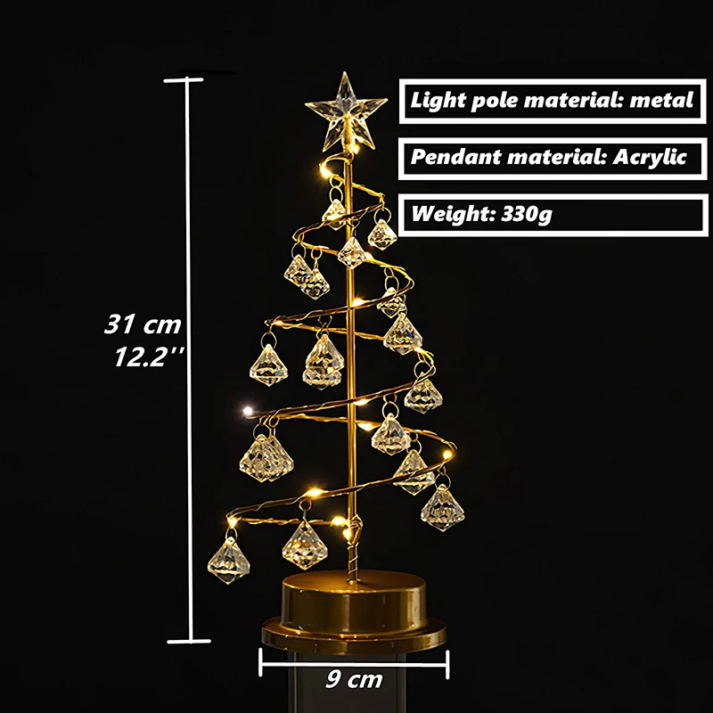 Светодиодный Рождественский хрустальный светильник s, рождественские подарки, Хрустальная елка, настольная лампа с кристаллом, подвесной светильник на батарейках, вечерние, свадебные, праздничные, Декор