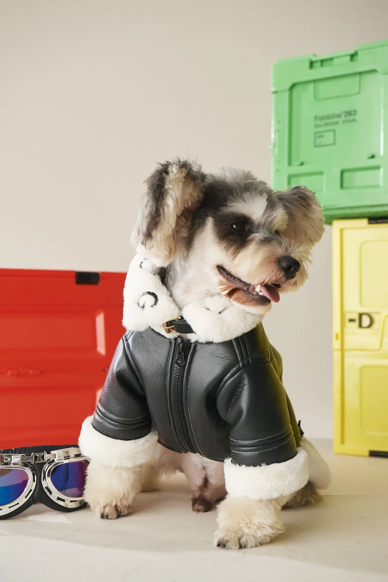 Одежда для собак, осень и зима, утолщенная, черная, искусственная кожа, шнаузер, кошка, померанские товары для домашних животных