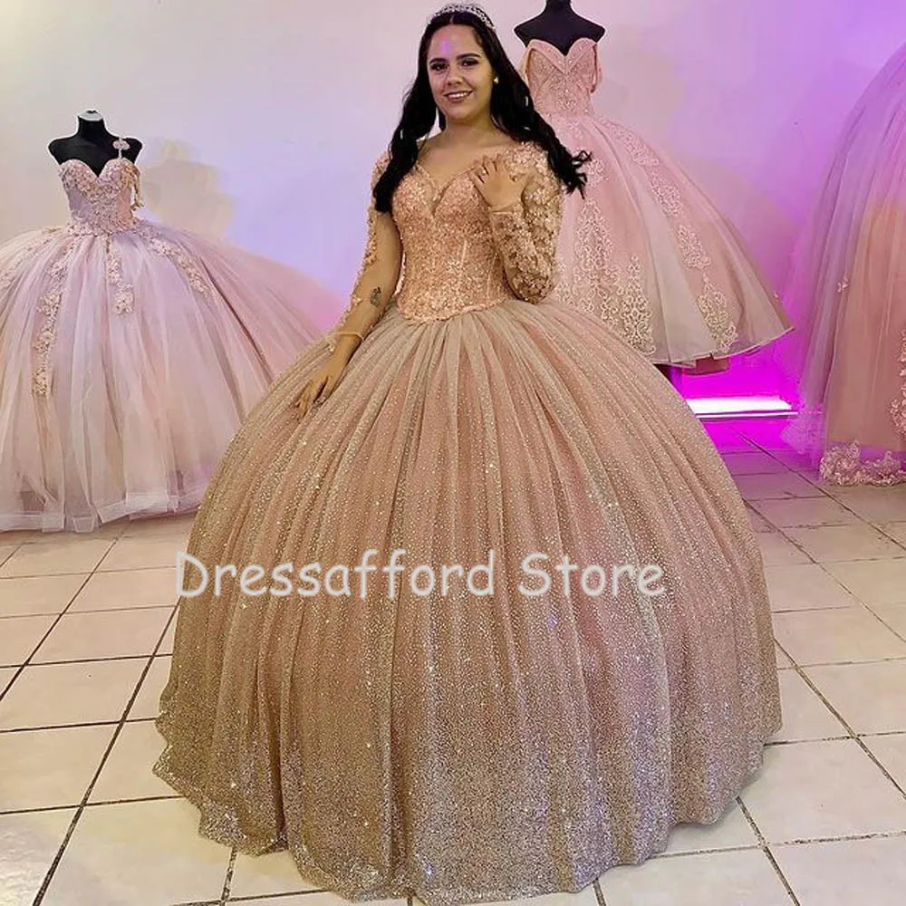 Блестящее розовое Золотое бальное платье с открытыми плечами, плать...
