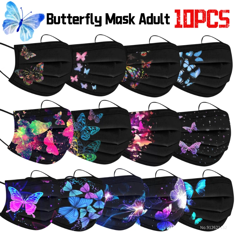 10 шт. маска для лица для взрослых женщин мужчин разноцветная бабочка печатная одноразовая маска для рта 3-слойная маска для рта с петлями для ушей маска