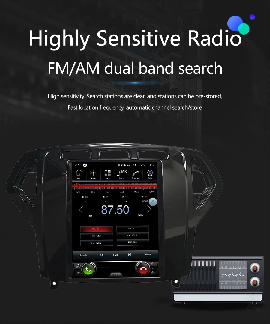 Автомобильный мультимедийный проигрыватель в стиле Тесла, 8 ГБ ОЗУ, 128 Гб ПЗУ, GPS-навигация для Ford Mondeo Mk4, радио 2007-2014, 8-ядерный процессор, видеоплеер Andriod 11