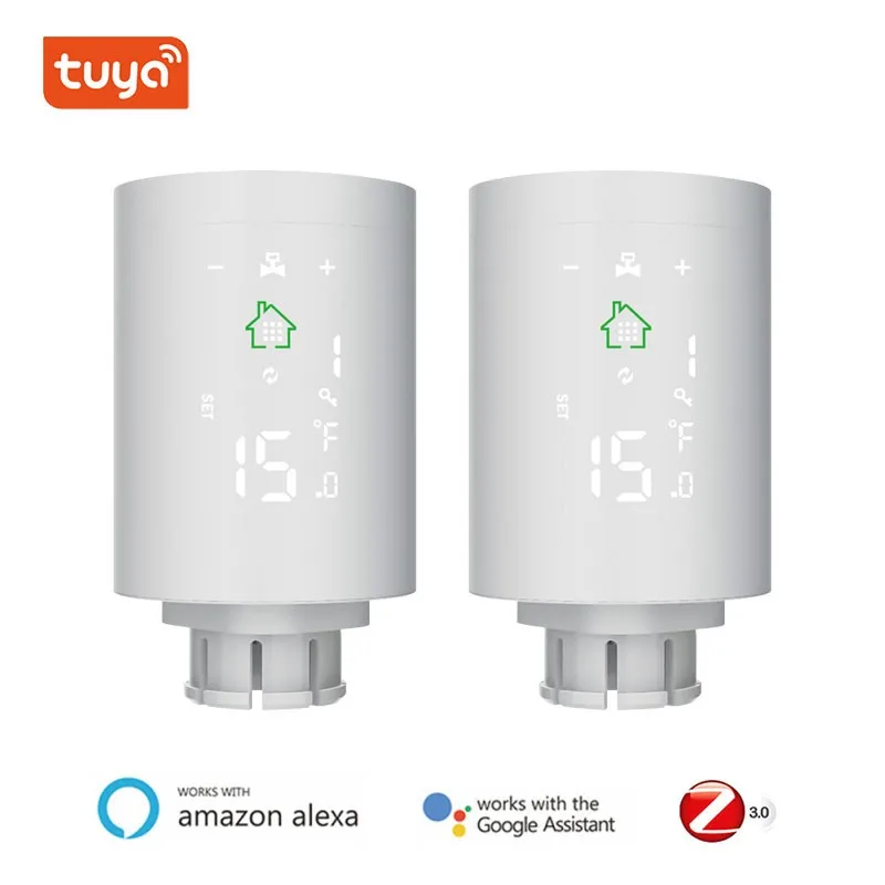 1. Термостат привода радиатора Smart Tuya ZigBee: Новый мини-дизайн с простым и четким ЖК-экраном на корпусе, термостат радиатора с ЖК-дисплеем и двумя секциями аккумуляторов AA, который является специальным клапаном, использующим вместе с нагревательным радиатором. Искусственно устанавливаемая температура в помещении, В основном используется в напольной системе отопления для контроля закрытия и открытия трубы.