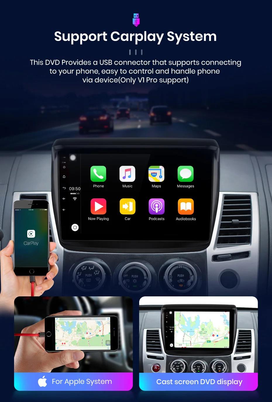 -Только для версии 4 Гб + 64 ГБЭтот DVD обеспечивает usb-разъем, который поддерживает подключение к телефону, легко управлять и обрабатывать Iphone через устройство. Он называется ZLINK в системе.
