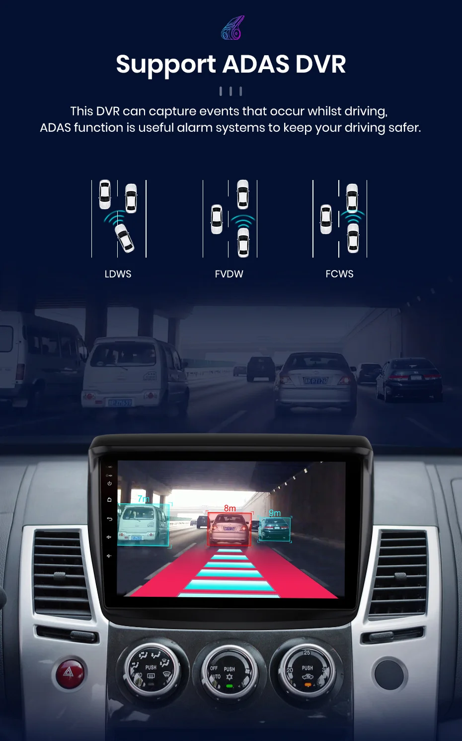 screen display9 inch 2.5D screen, 1024*600 resolution