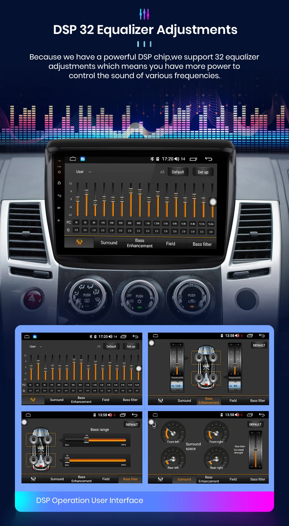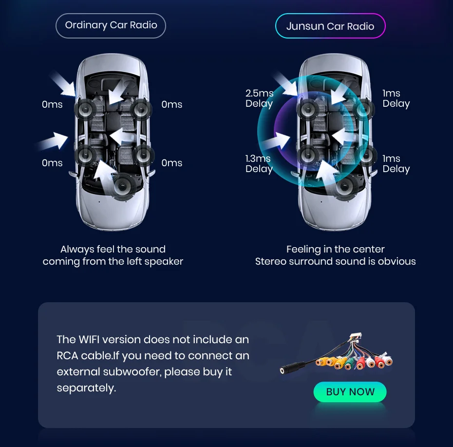 Благодаря встроенному усилению 4*45 Вт музыка звучит очень четко даже при высоких объемах.Вы можете настроить звук для ваших личных предпочтений, с 9 графический эквалайзер: поп, рок, джаз, Классическая, без каблука, пользователя, голоса и т. д.Несколько вариантов настройки позволяют вам наслаждаться звуком лучше.