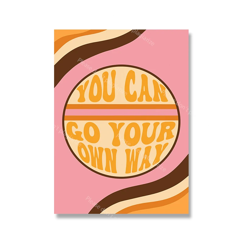 Ретро-иллюстрация 70-х, постер с цитатами Go With The Flow, Художес...